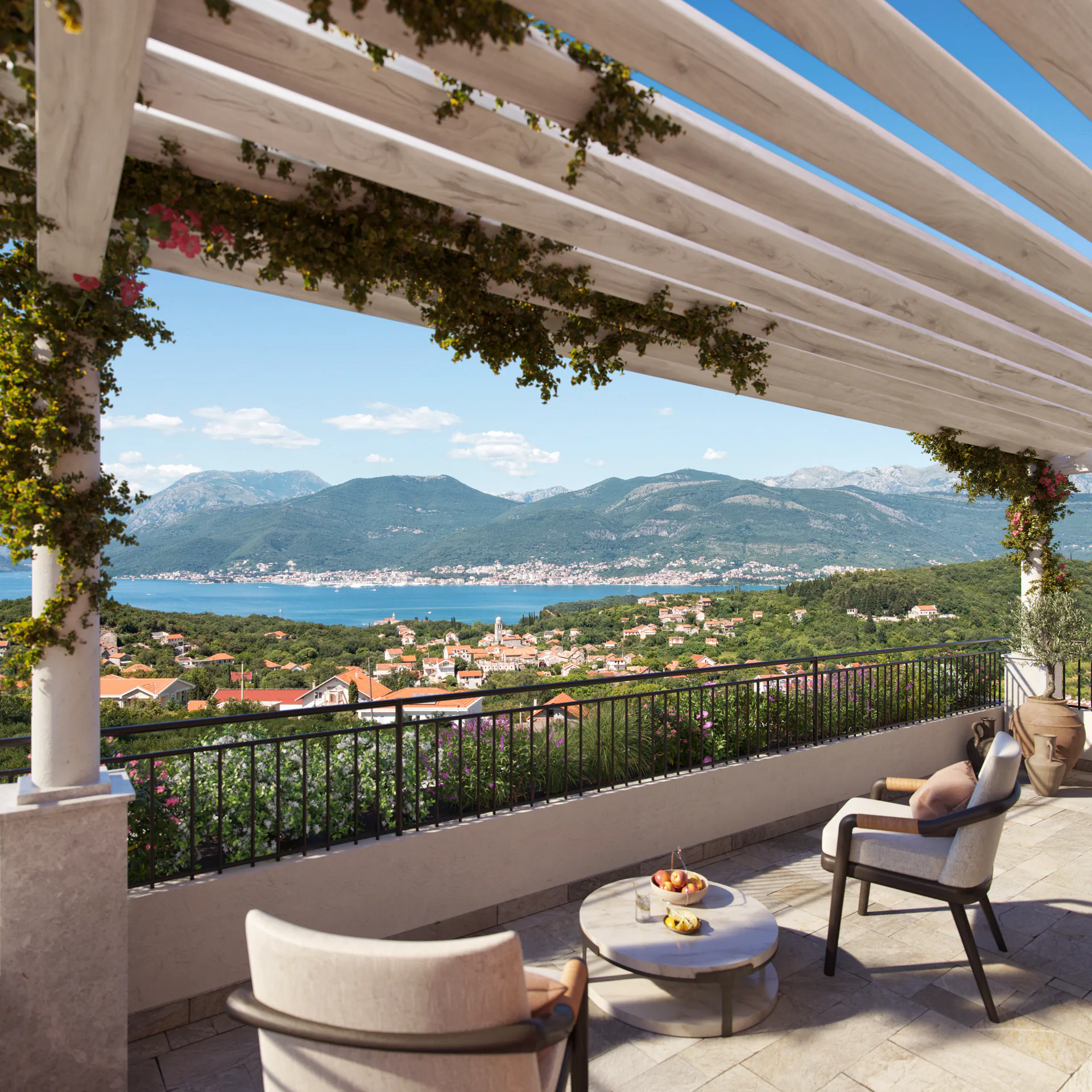 Panoramablicke auf Adria, Golf & Berge machen dieses Viertel zu einer der begehrtesten Premium-Lagen in ganz Montenegro.